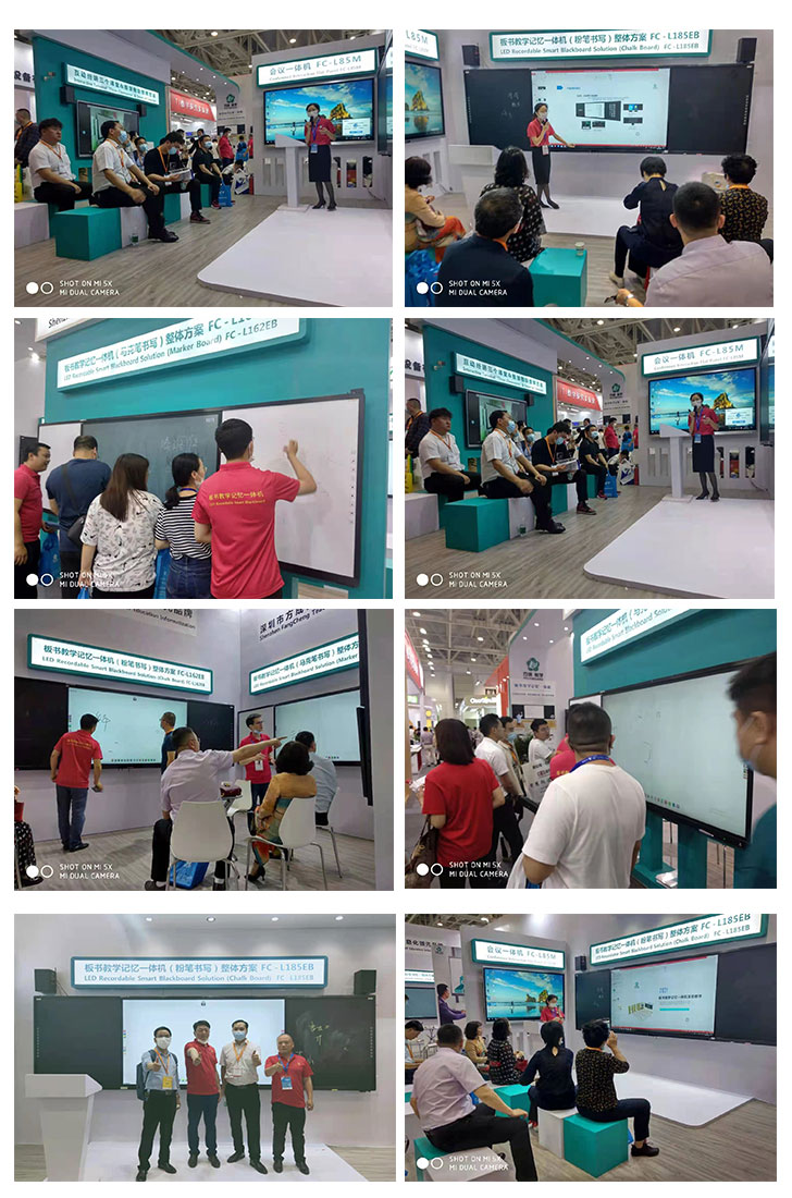 開展首日,方成展位現(xiàn)場(chǎng)人聲鼎沸,絡(luò)繹不絕。作為板書教學(xué)記憶一體機(jī)的首發(fā)者,方成一直以教育信息化為導(dǎo)向,深耕智慧教學(xué)產(chǎn)品,本屆展會(huì)帶去的185寸板書教學(xué)記憶一體機(jī),是我們整場(chǎng)的聚焦產(chǎn)品。功能升級(jí)后的板書教學(xué)記憶一體機(jī),融合音頻互動(dòng)教學(xué),超大尺寸帶來的全新體驗(yàn),不斷刷新了教育各界領(lǐng)導(dǎo)對(duì)板書記憶的認(rèn)知;展位上我們以詳細(xì)的講解,吸引了一波又一波的人駐足了解。