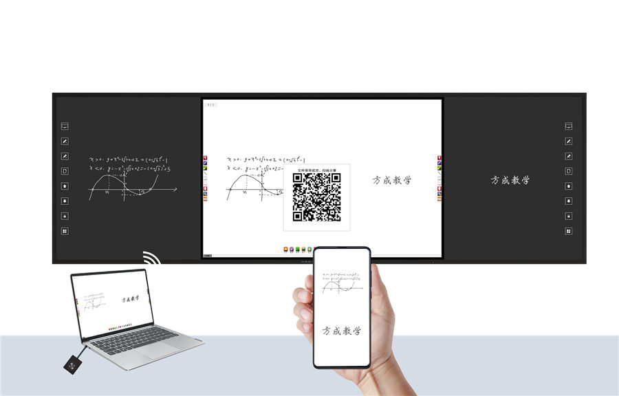 板書教學(xué)五同步: 同步書寫、同步顯示、同步擦除、同步保存、板書記憶雙系統(tǒng)同步,兩側(cè)可同時書寫,中間同步顯示,過程書寫無遮擋,還原板書過程。