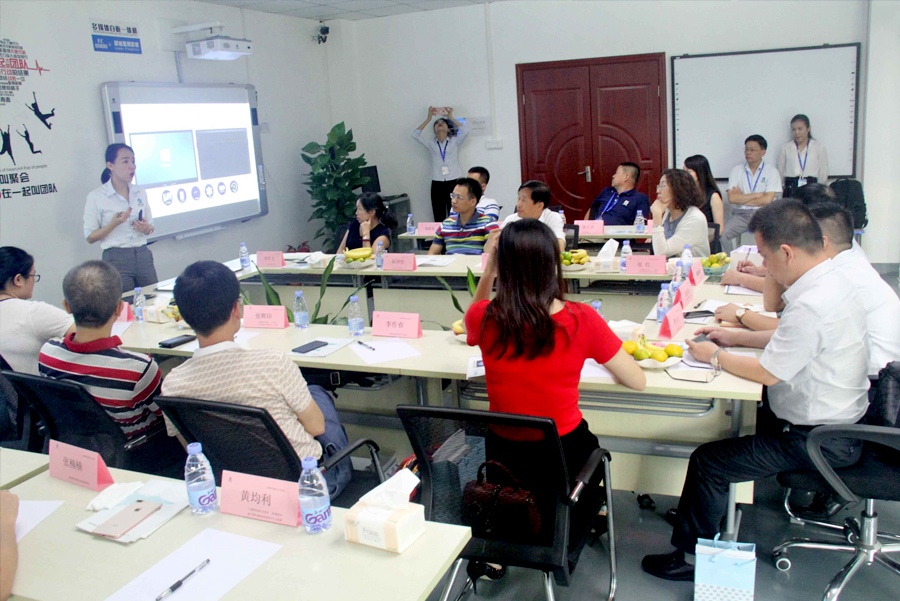 參觀期間,各位領(lǐng)導(dǎo)認(rèn)真聽取我們美女講師對(duì)方成教學(xué)一系列硬件產(chǎn)品的講解,其中包括壁掛一體機(jī)、交互式電子白板、白板一體