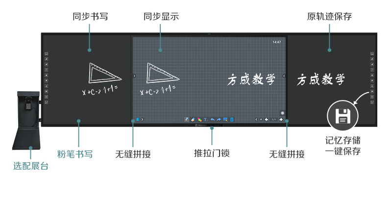 板書教學(xué)記憶一體機(jī)-記錄板書內(nèi)容、再現(xiàn)課堂過程、轉(zhuǎn)化教學(xué)資源,板書教學(xué)記憶一體機(jī)集六大產(chǎn)品于一機(jī),在不改變老師板書習(xí)慣的前提下,實現(xiàn)傳統(tǒng)教學(xué)與多媒體設(shè)備的智慧融合,設(shè)定了有板書記憶、板書同步顯示、板書自動分享等多樣化功能,每一個功能的實現(xiàn)都賦予了自己的使命。