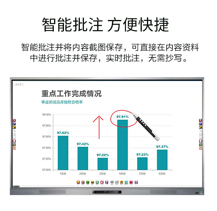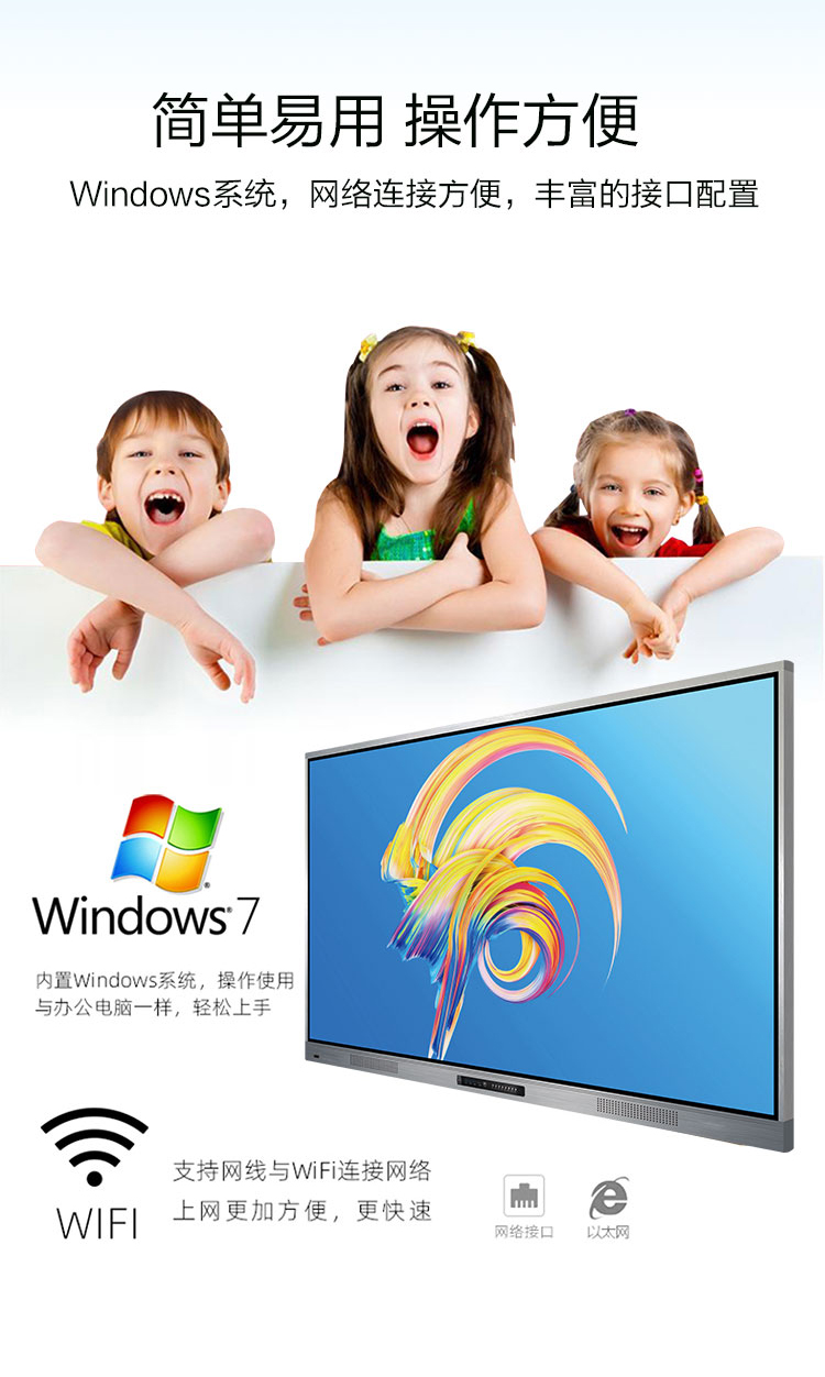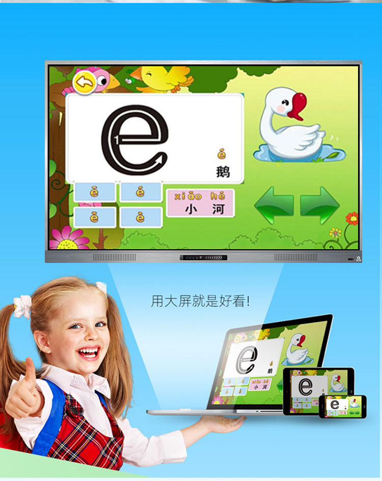 三等邊超窄邊框設計,推拉門鎖保護,4K超高清顯示,以人機交互的方式,搭載互動白板和無線投屏軟件,實現(xiàn)多人書寫、互聯(lián)互通的互動教學模式,豐富課堂內容,提高學習氛圍。