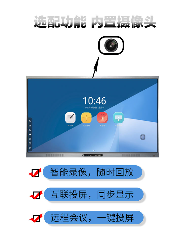 5、時尚精簡外觀,會議一鍵啟動(這條特點針對于S款不帶推拉門的會議平板一體機,主要應用在會議場所用)