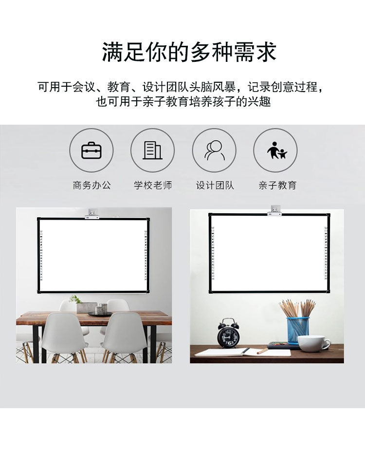 紅外電子白板是搭配多媒體一體機和投影機同步使用,納米面板折射光源保護視力